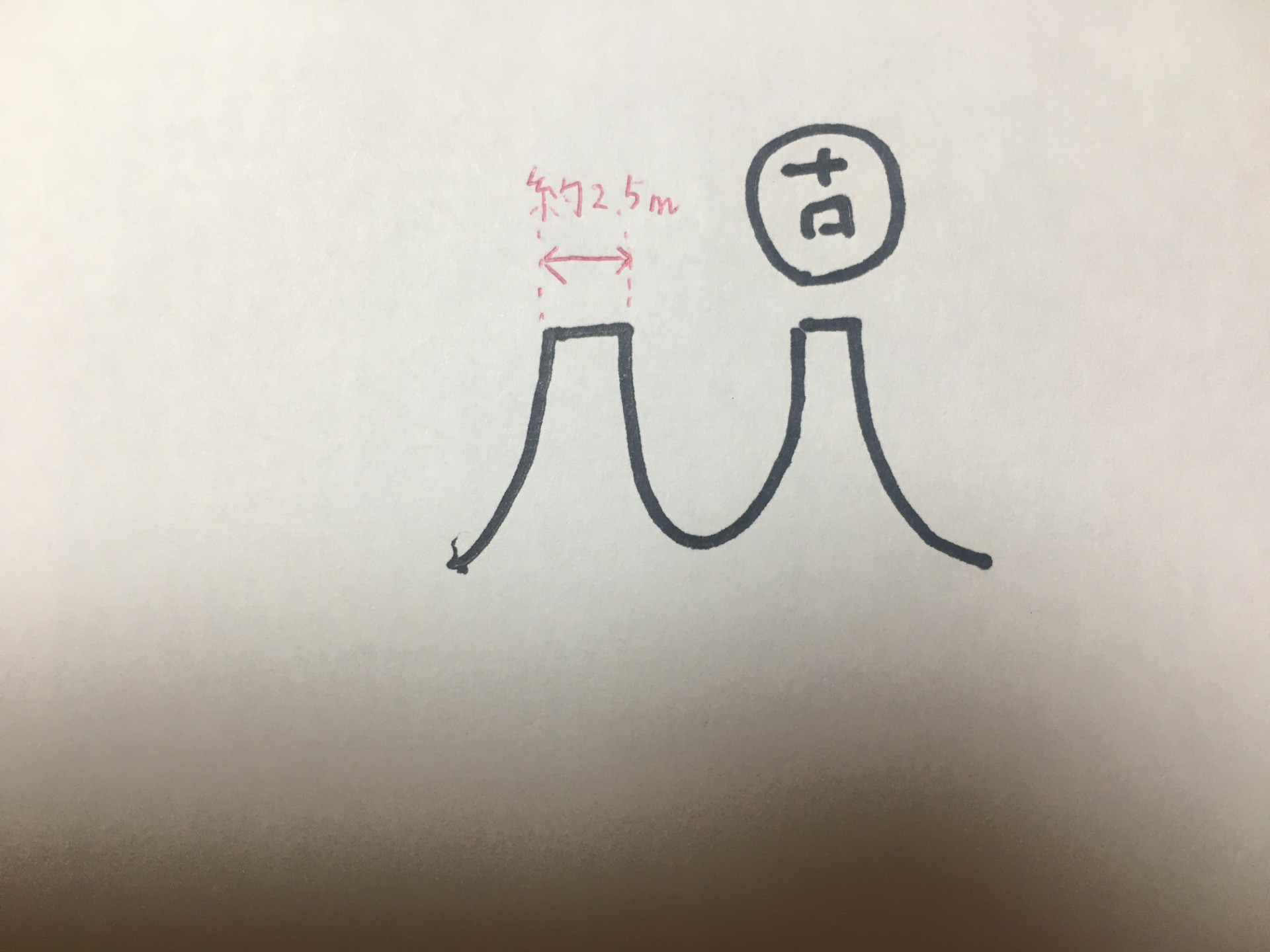 今回は新品と旧品の一番小さそうな山を計測しました。計測中のノギスの写真も撮ったのですが、分かりにくいので絵を描きました!