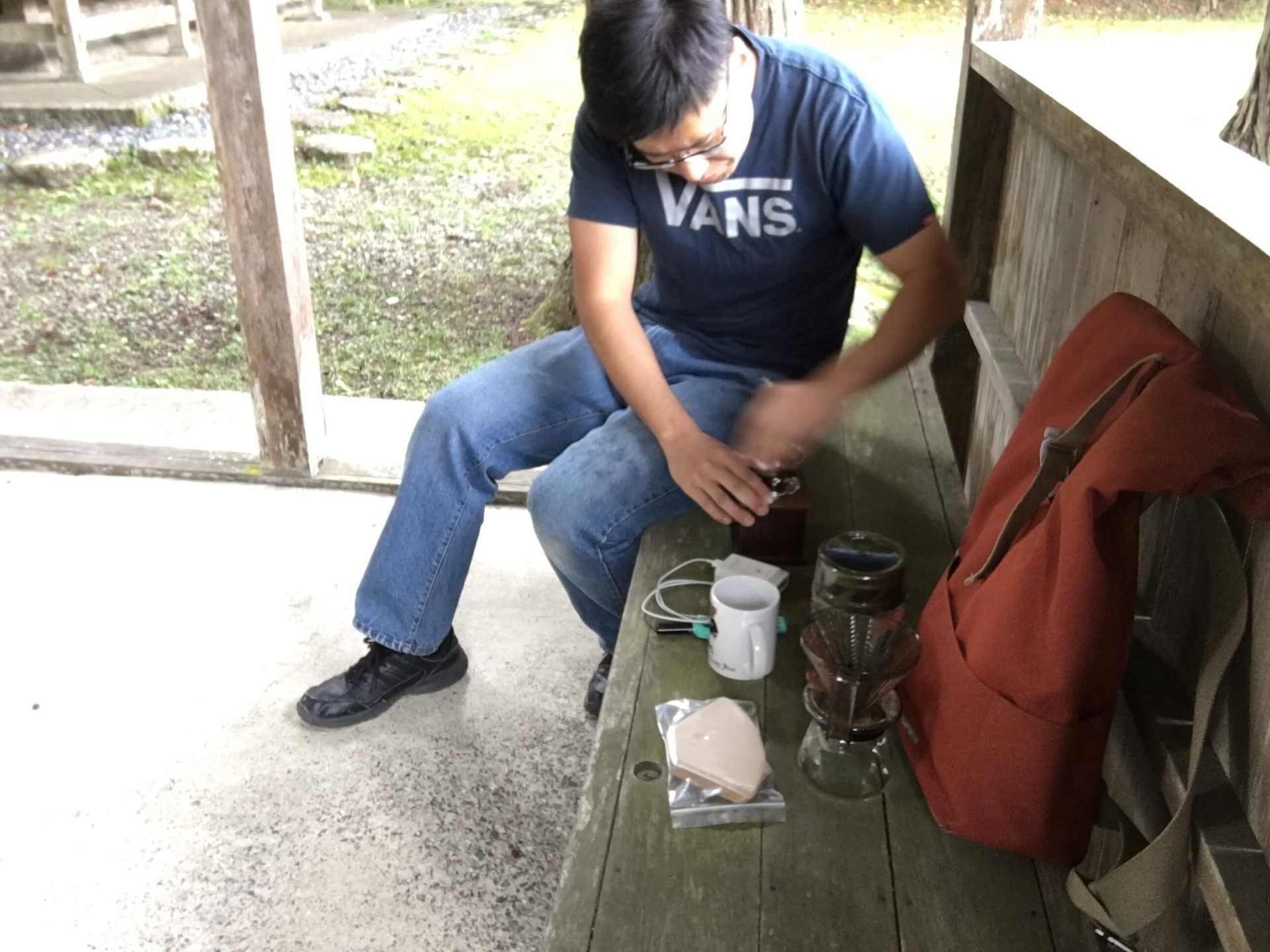 豆を挽きながら、湯を沸かす!
