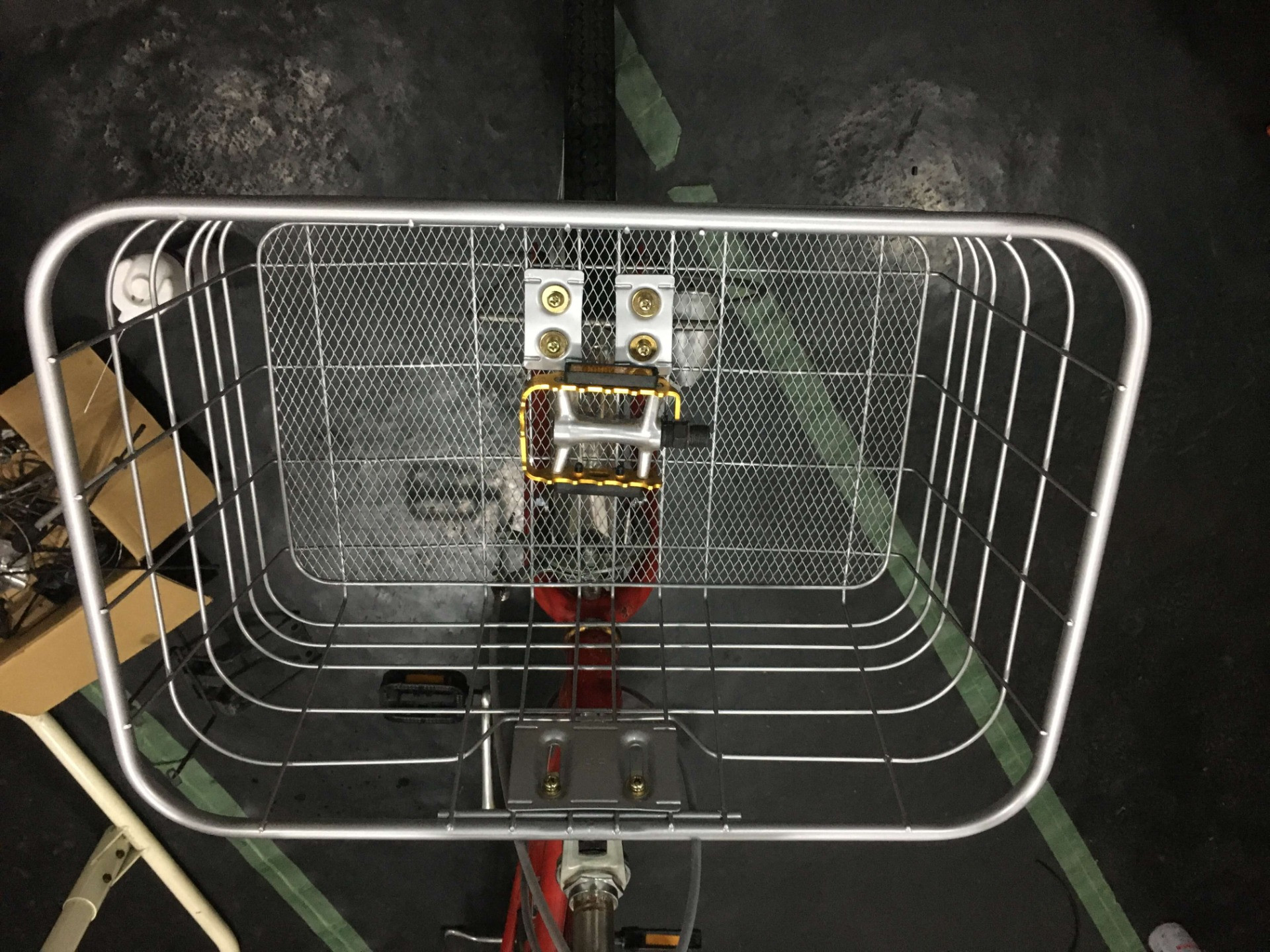 大きめのカゴを付けた。大きさ比較のためにペダルを入れてみました(笑)。