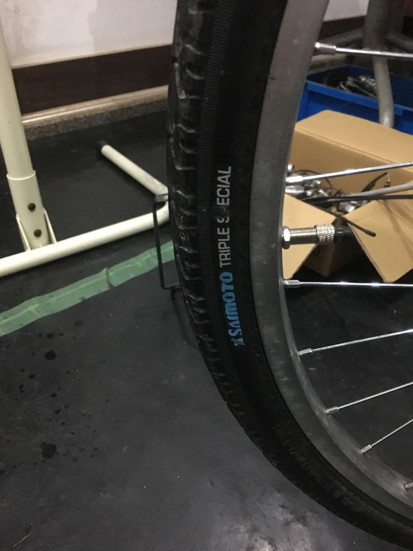 リアのタイヤはフロントタイヤを流用、チューブが新品に交換。