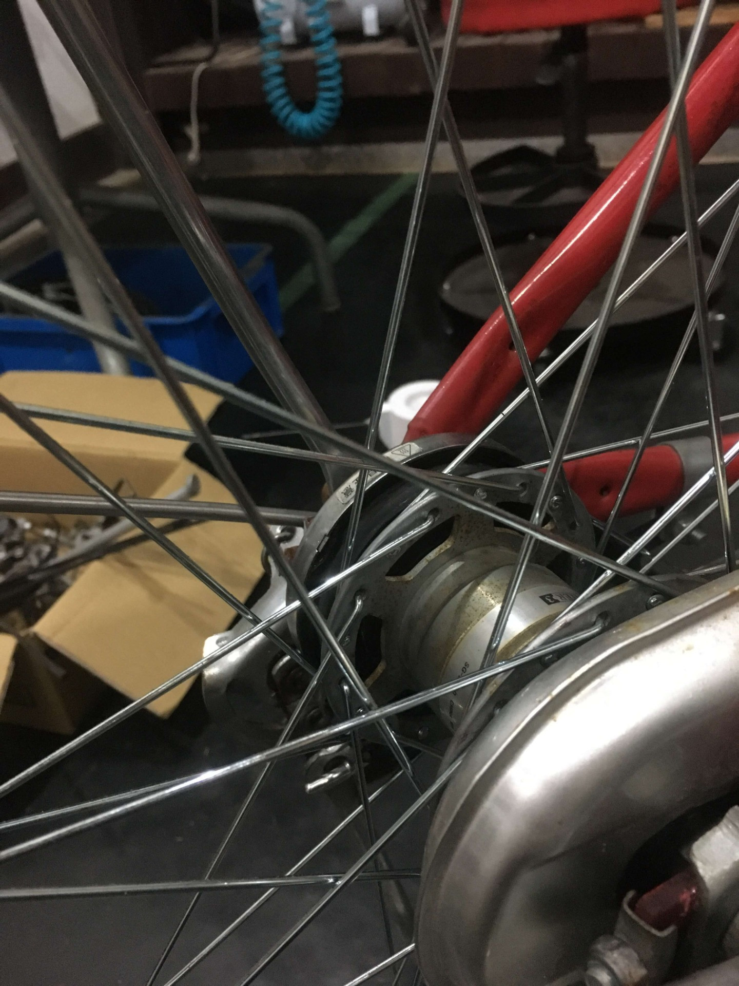 やってみた結果は・・・。あんまり6本組と変わらない・・・。たぶん、リムの強度不足なんだろうな?シティサイクルのリムは、シングルウォールだから剛性が低い。それが如実に出ましたね。これからお客さんに運用してもらって、どうなっていくのか。経過観察が楽しみです!