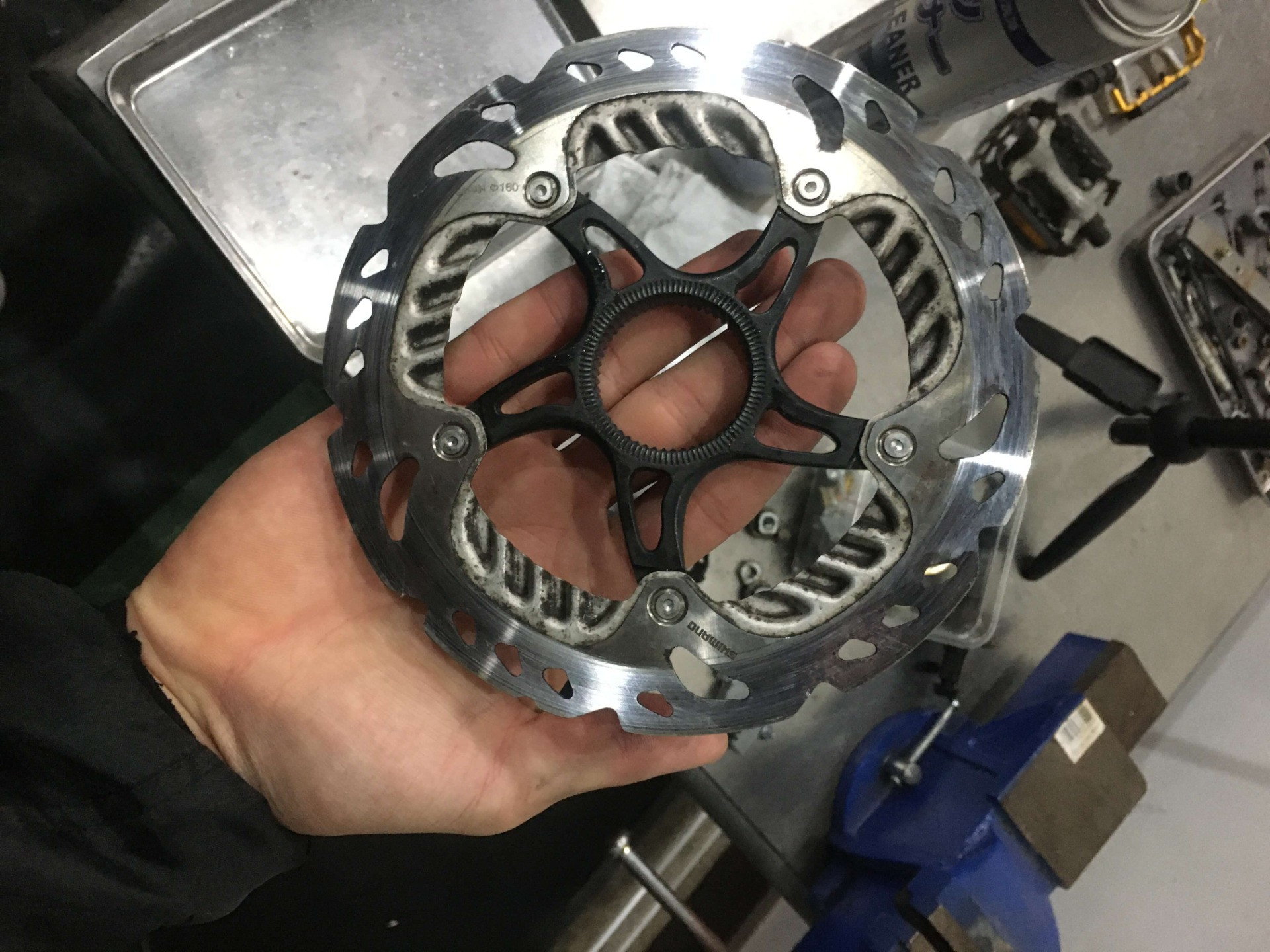 なんでこんなになってんだろう?ローターが汚れたまま走りすぎたか?