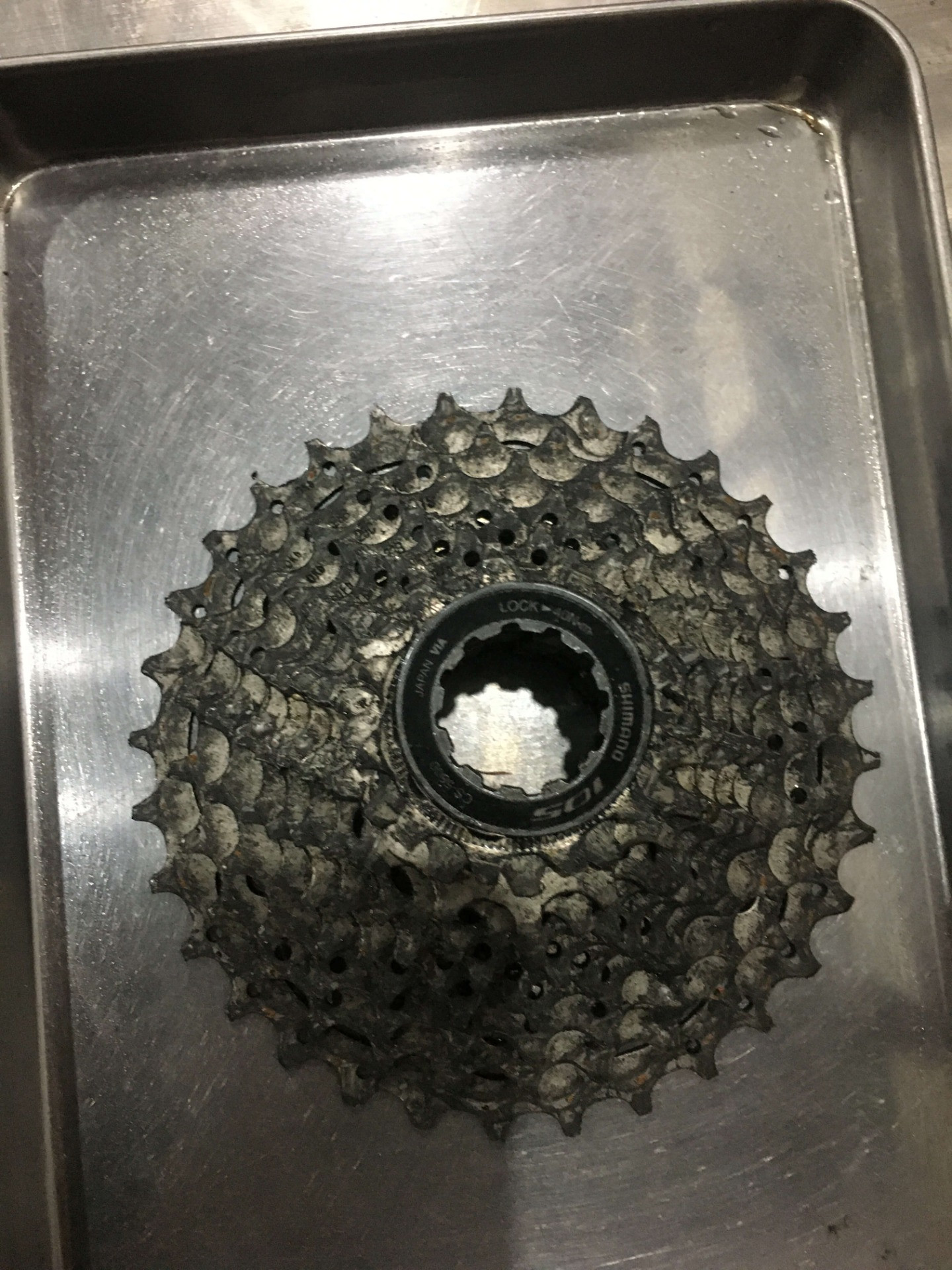 注意点はスプロケットの掃除は始めたら止まらなくなります。「かっぱえびせん」のようなものです。やめられないし止まらない・・・。
