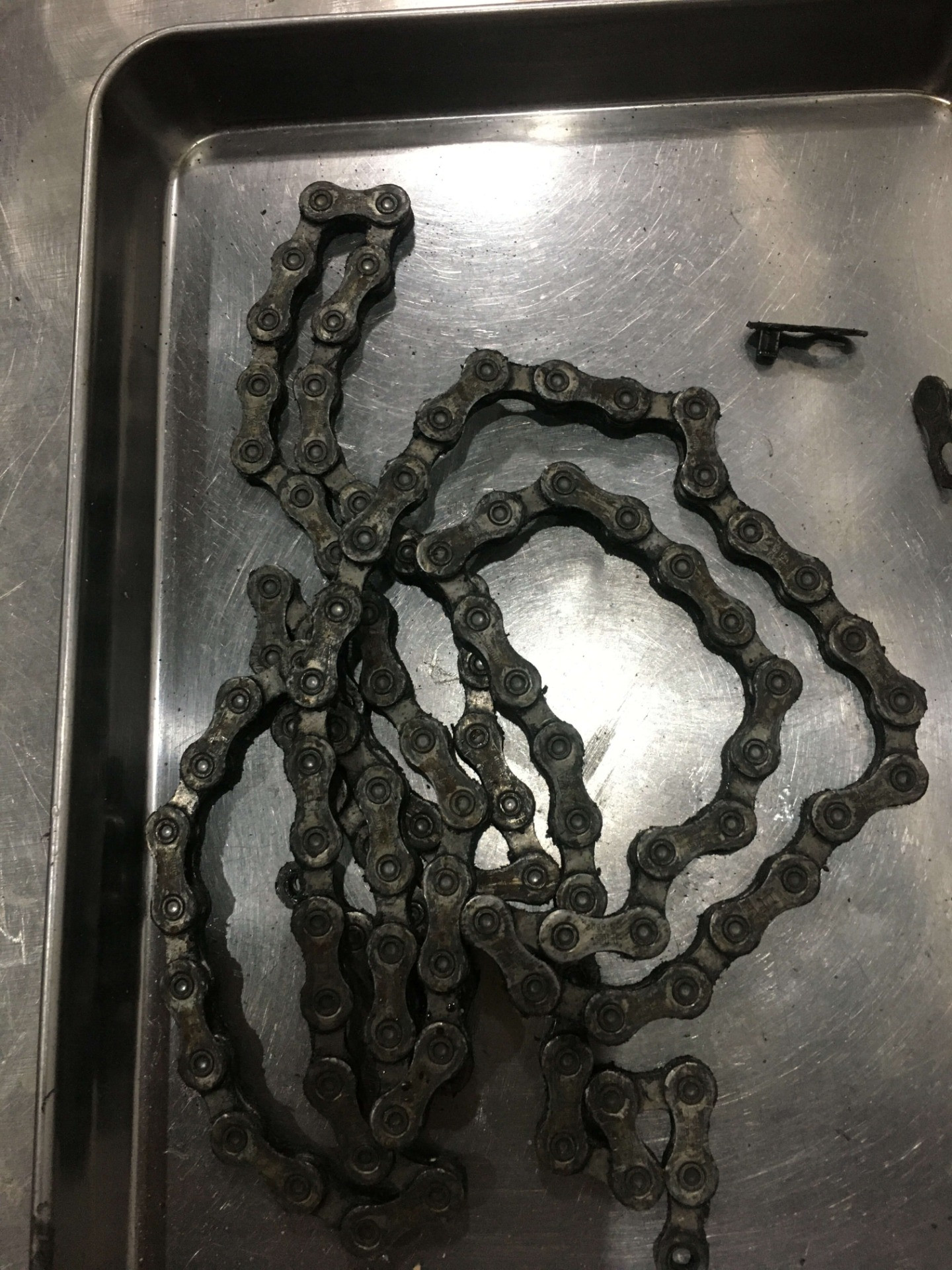 フレームがキレイになったら、次はチェーンをクリーニングします。