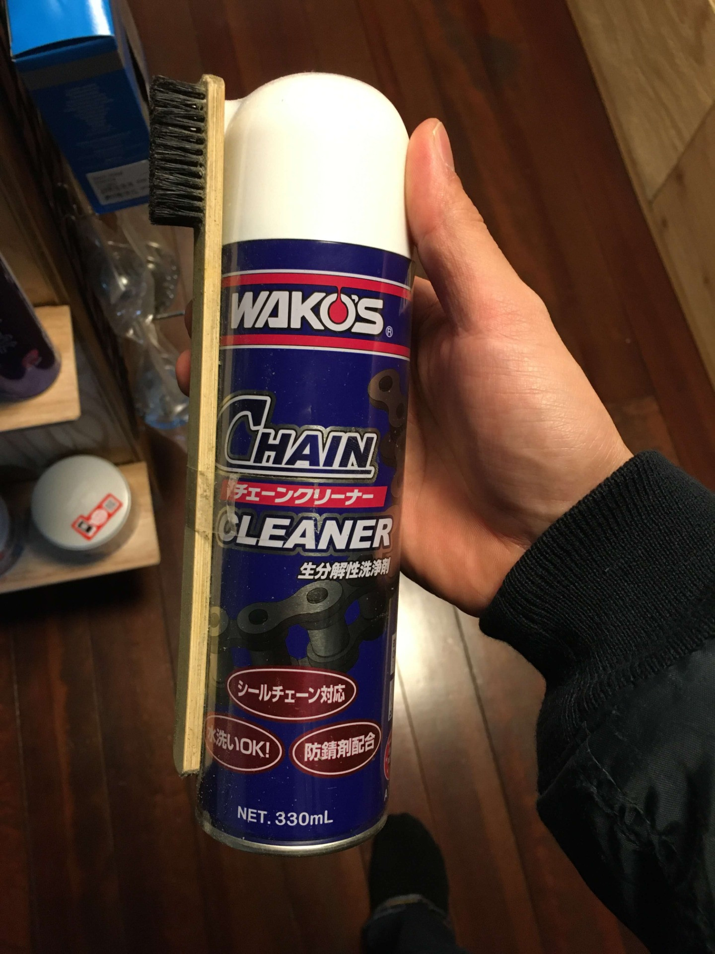 汚れがきつい場合には、チェーンクリーナーを吹きかけて、ブラシでゴシゴシと擦ると、汚れが柔らかくなり、落ちやすくなりますよ。