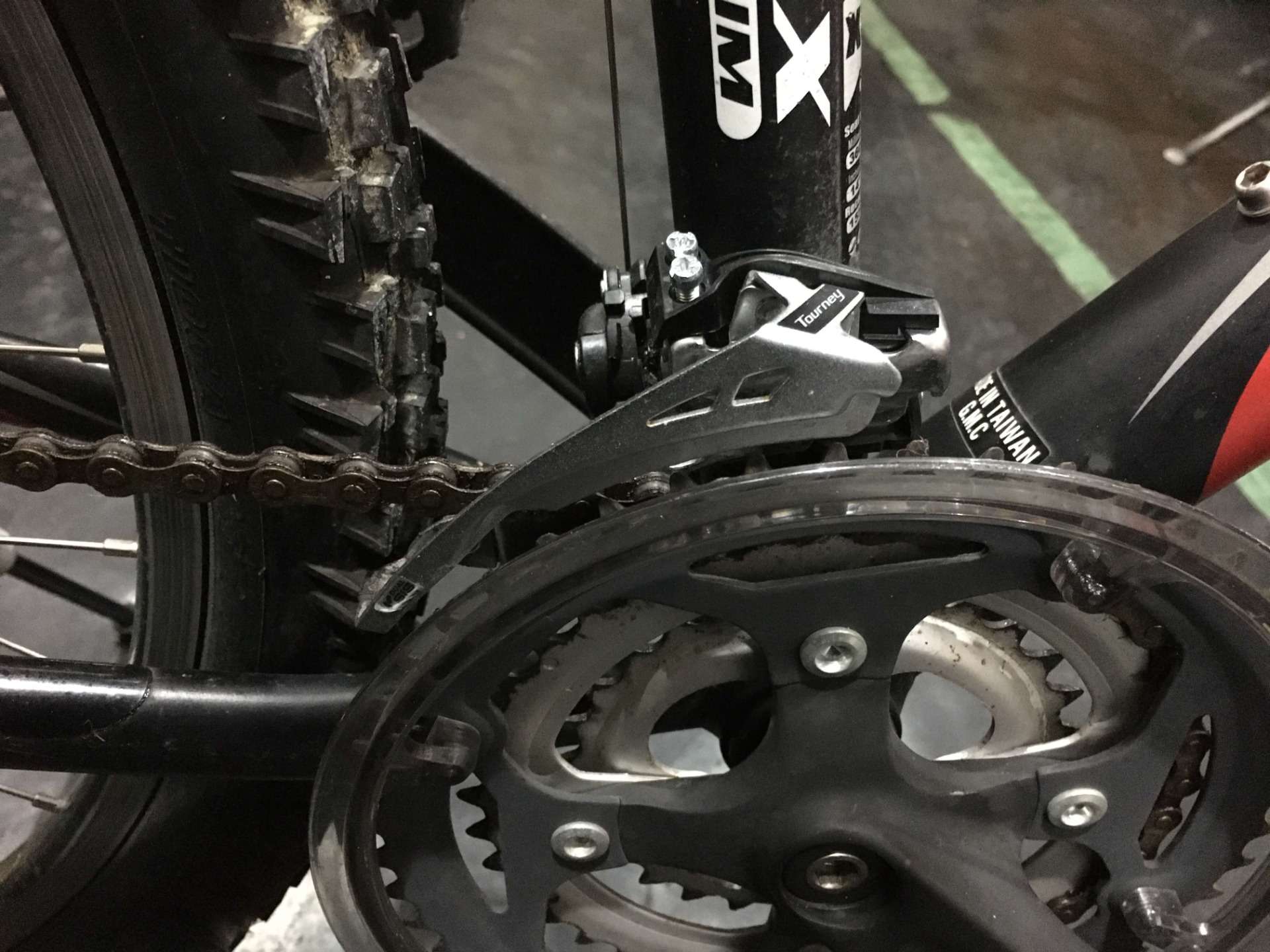 ガッツリとチェーンカバーを取り付けるとフロントディレイラー(変速機)の調整が出来なくなります。