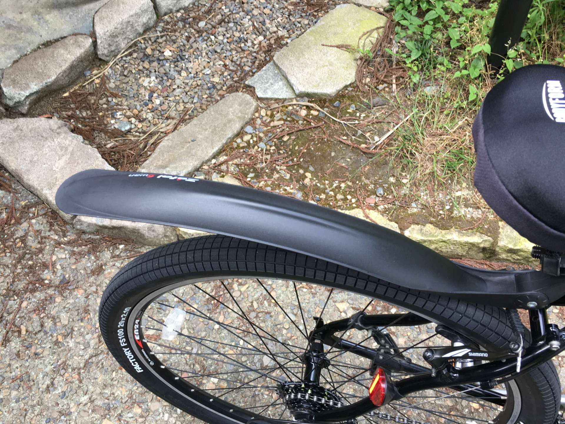 バンパー等の黒い樹脂パーツに輝きを取り戻すためのケミカルなのですが、当然今回のように自転車のパーツにも有効です。