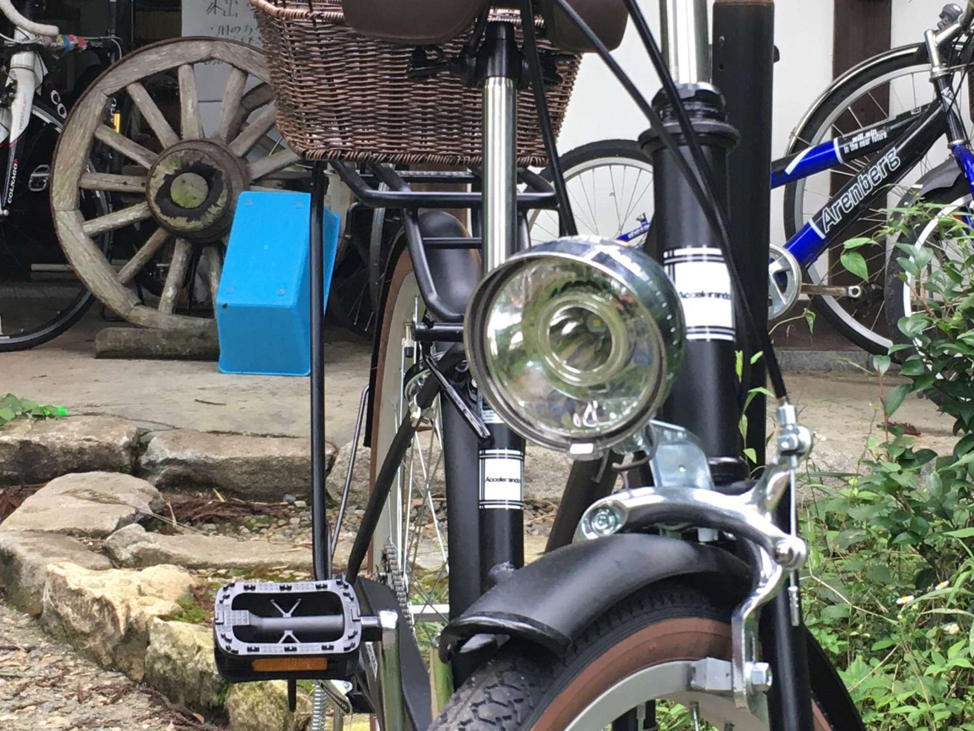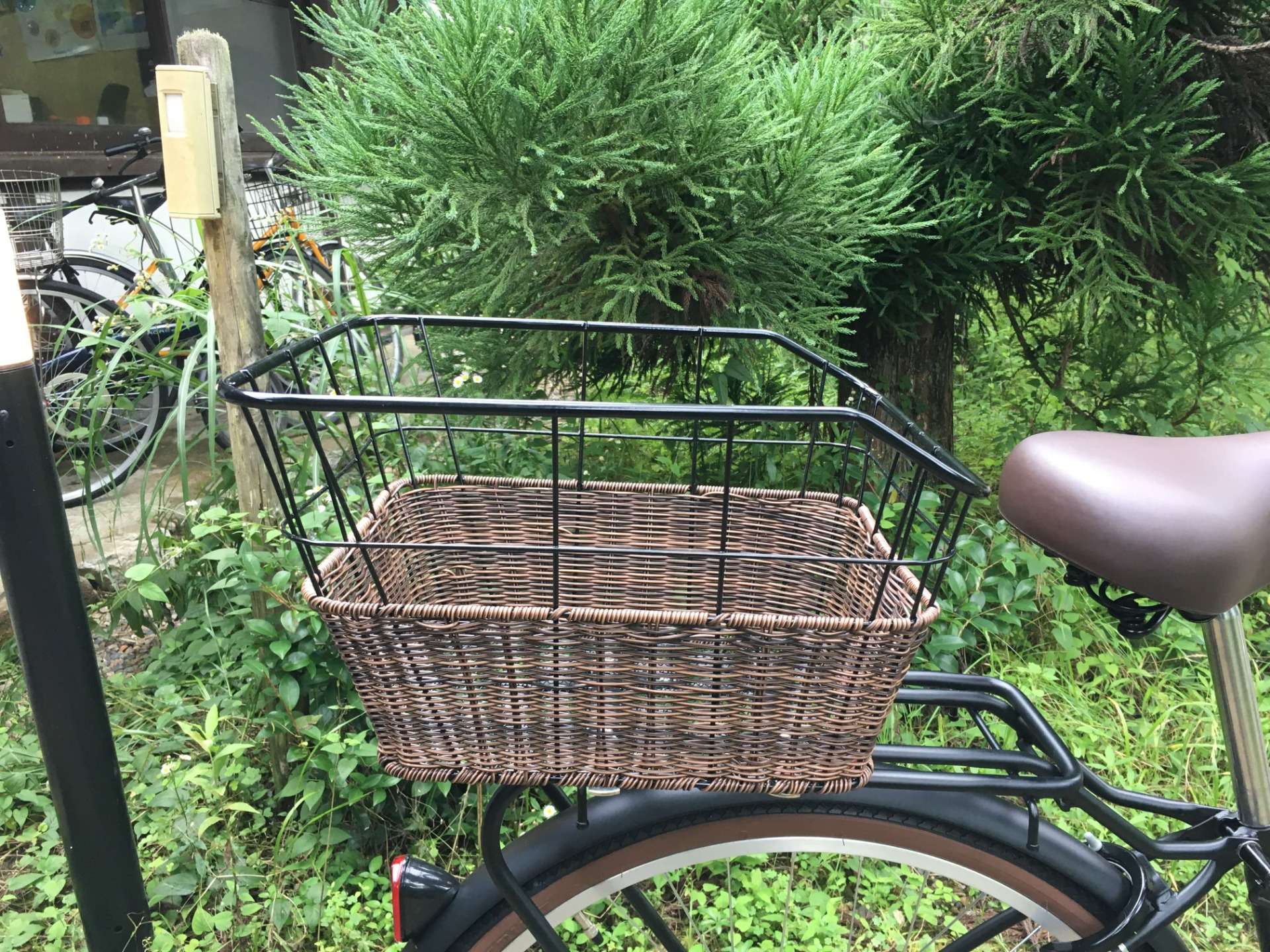 先ずは、前カゴを外して籐風の後ろカゴを取り付けました!