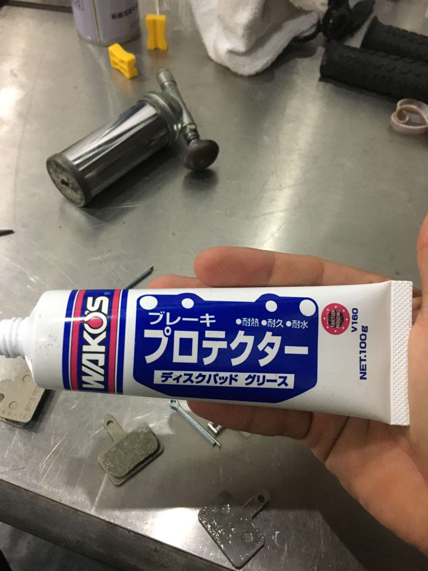 ブレーキパッドにはブレーキプロテクターを塗ります。