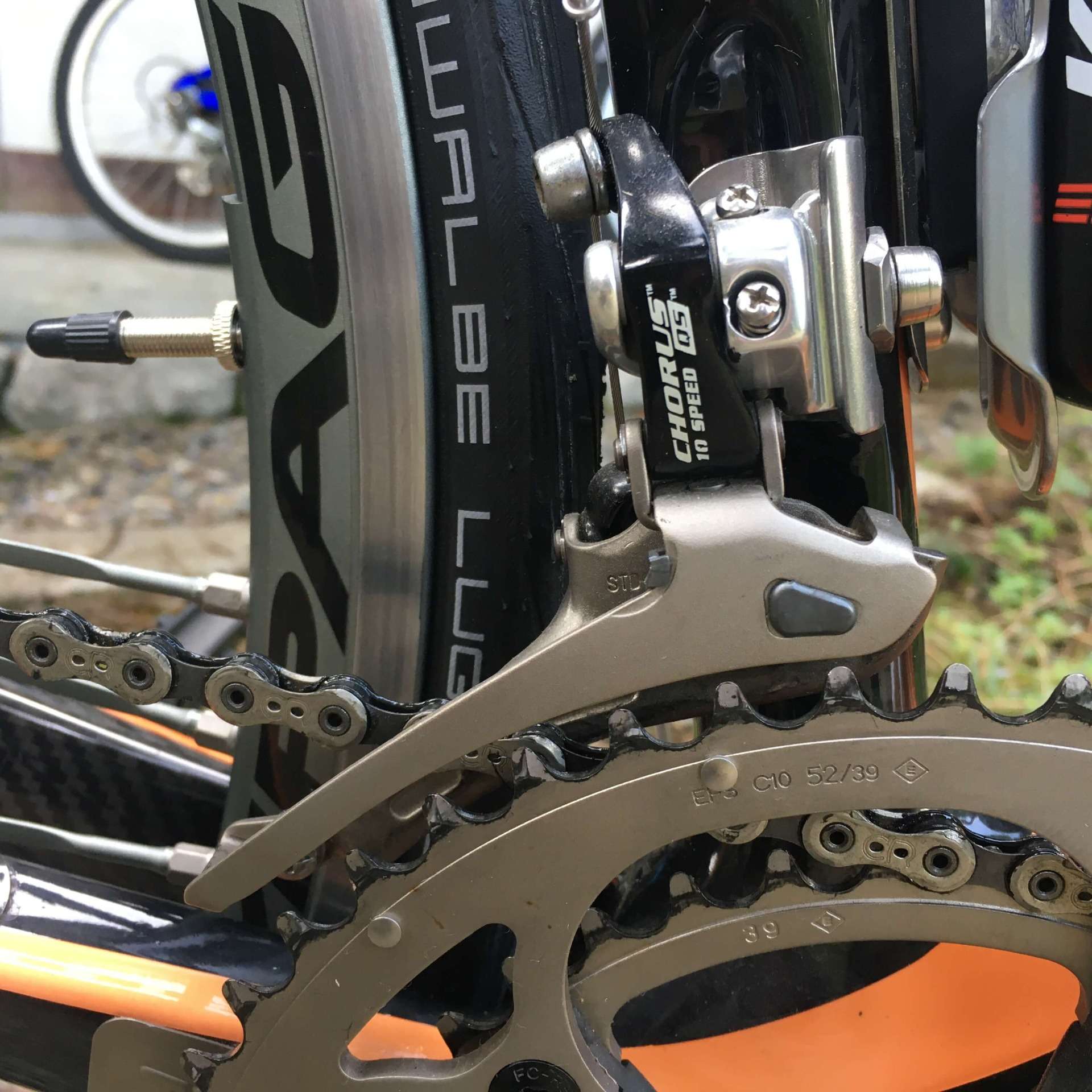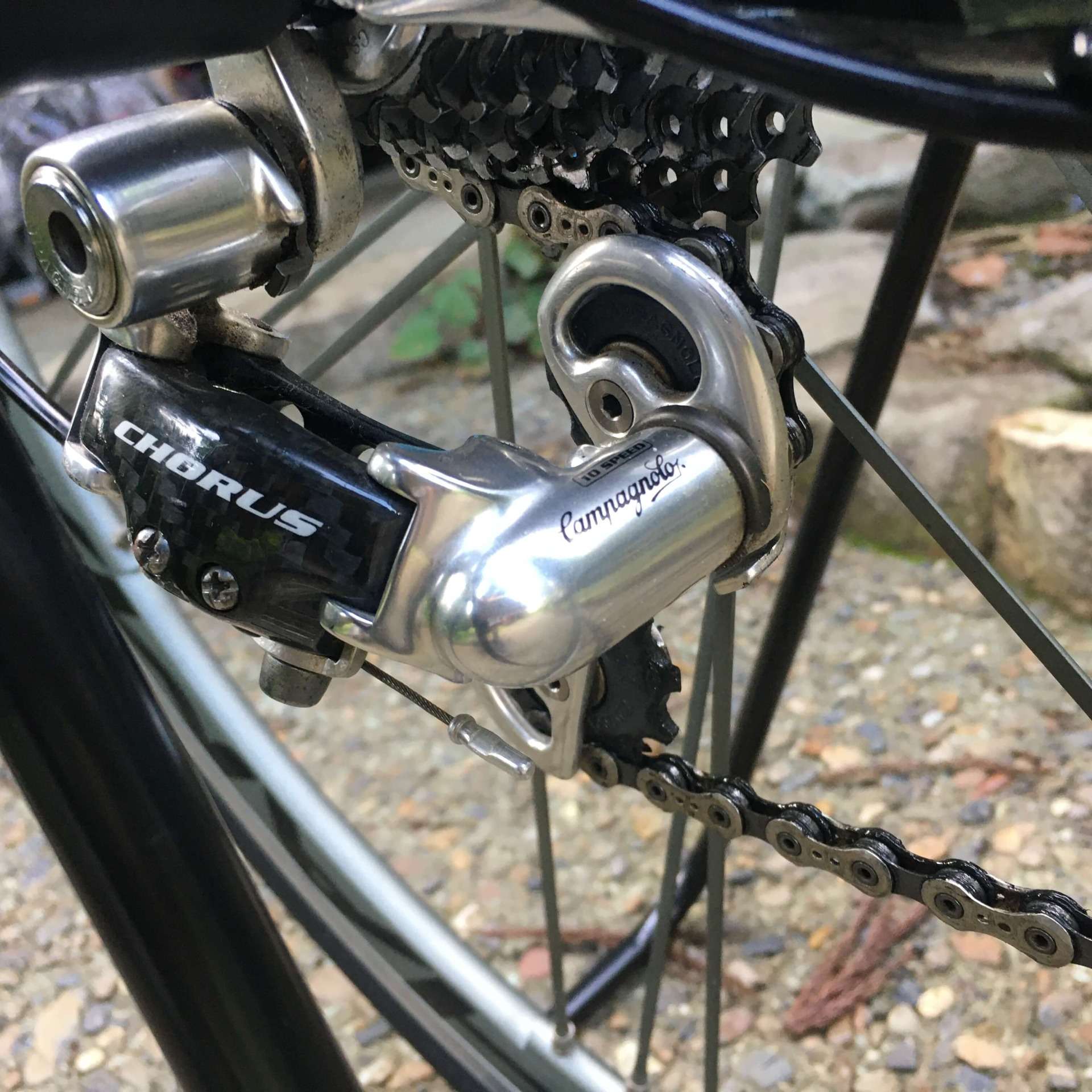 この自転車の整備を依頼された時に「10速コーラスの補修パーツは流通してないだろうなぁ・・・」と思い、「何かトラブルがあったらシマノに全交換しましょう」とお客さんへ伝えました(笑)。