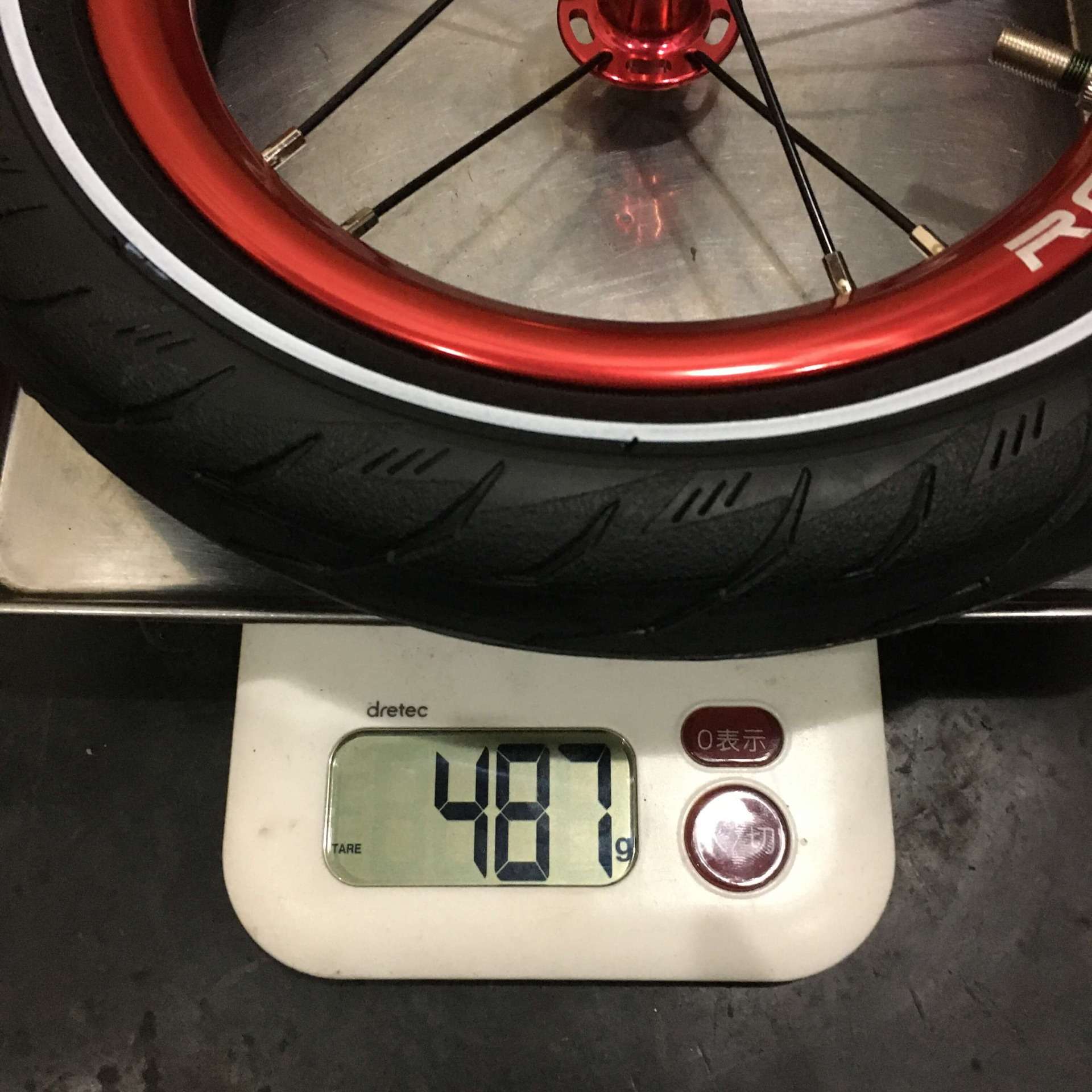 タイヤ&チューブを付けた状態での重量は487g。