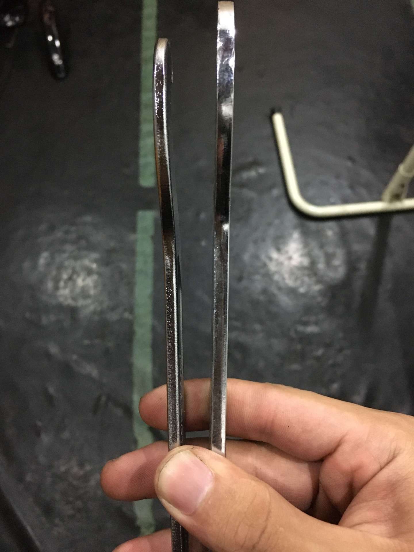 新旧のフックレンチの厚みが違うので、計測してみました。