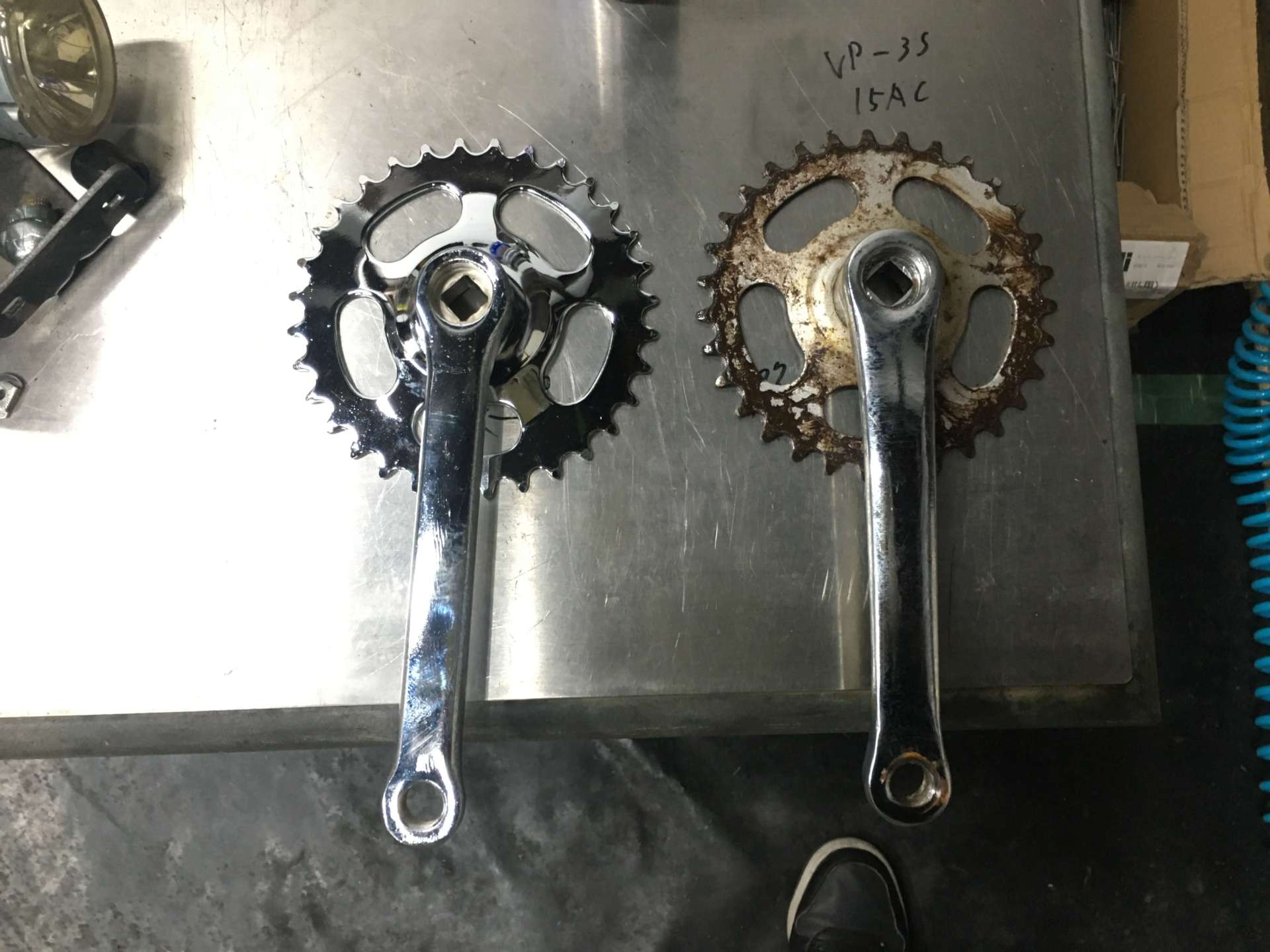 ペダルを交換してくれた自転車屋さんが、今回のお客さんにサイクルケアを紹介してくれたとのことで、どうやらそこの自転車屋さんではクランク交換が出来なかったそうです(;^_^A