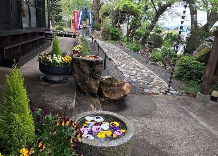 お庭はキレイなお花が沢山あって、それらを眺めながら腰を掛けて休める所もあります。