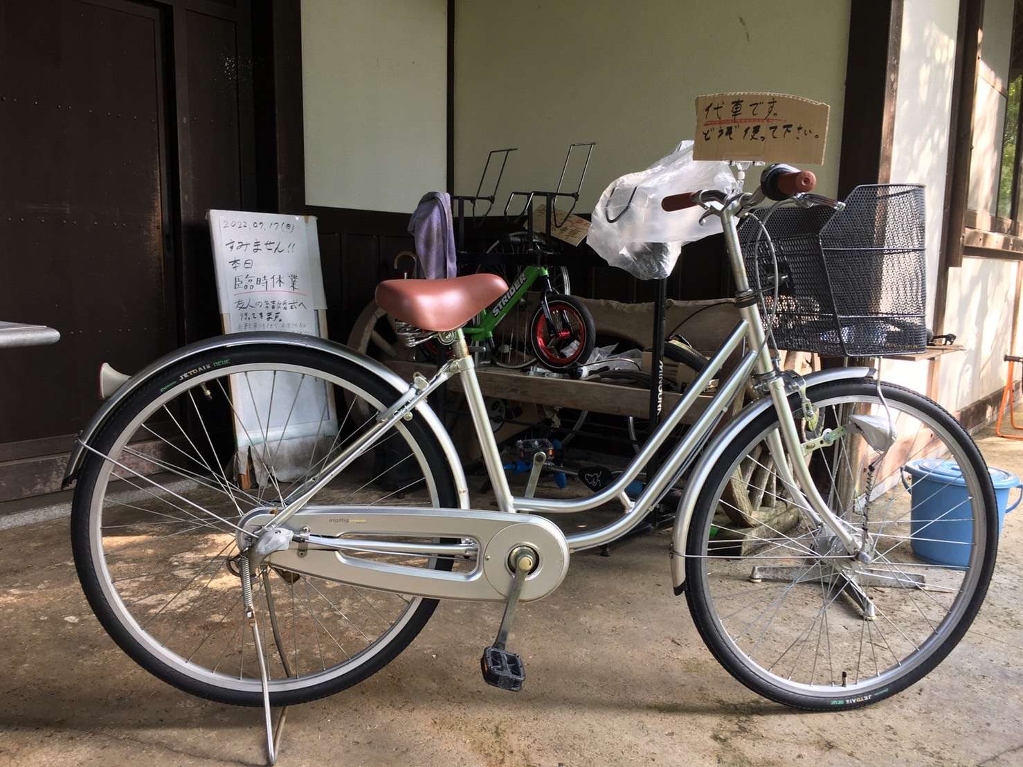 2022.07.17(日) 臨時休業のお知らせm(_ _)m 2022/07/17 こんにちは! 京丹波町の自転車店CYCLE CAREの小林です(^_^) 本日07.17(日)は友人の結婚式に行くので臨時休業致しますm(_ _)m 自転車の修理がある方はお店の前に自転車を置いといていただいて大丈夫です。 お困りでしたら、シルバー色の代車を用意しているので使って下さい(^◇^) では! Have a nice day👍
