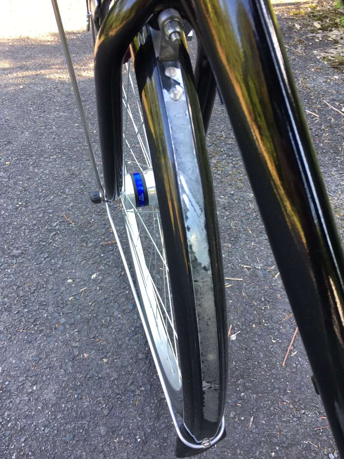 フレーム、シートポスト、クランク、ハンドルバーはアルミ製、フェンダーやチェーンカバーが軽量な樹脂製です。