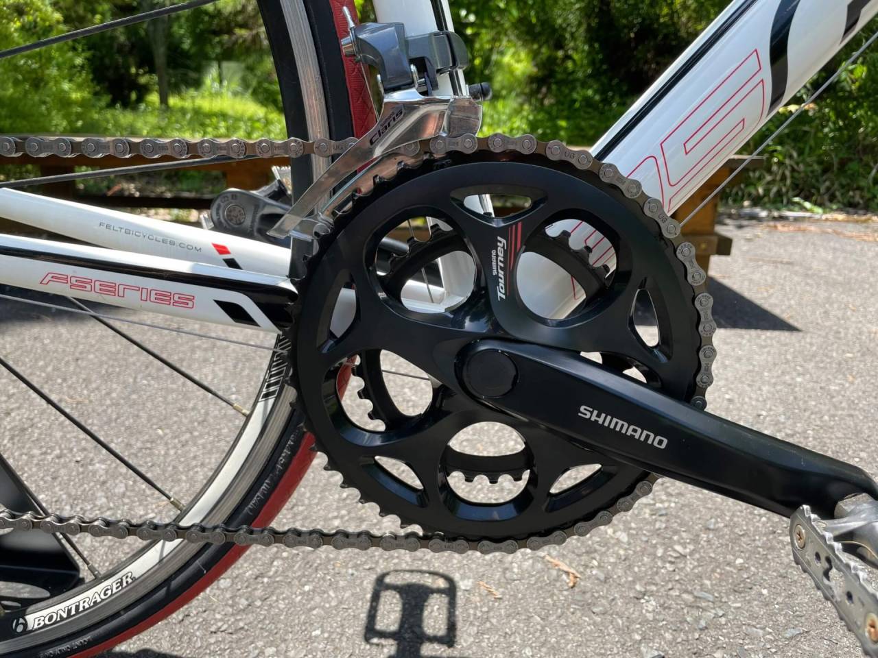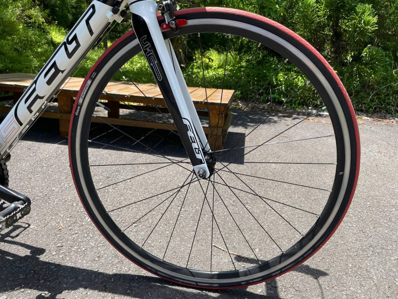 今どきはディスクブレーキのロードバイクが多いのですが、FB005はキャリパーブレーキです。